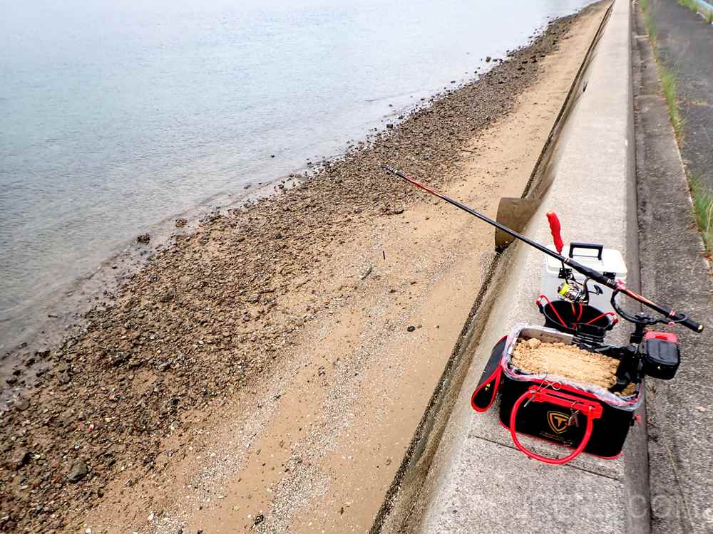 これ以前、国見さんが動画でやってたか言ってたかを薄っすら覚えていたので、どんなもんじゃいと思って試してみました。結果から言うと・・・見える範囲では仕掛けが入っていったかの確認がカラマン棒で出来ないし、割と絡みやすい?という結果で、う~ん?といった感じでしたね~。遠投メインで確実にフェザリングして刺し餌をまっすぐウキの向こうに落とすってスタイルなら、別にこれでもいいかも?