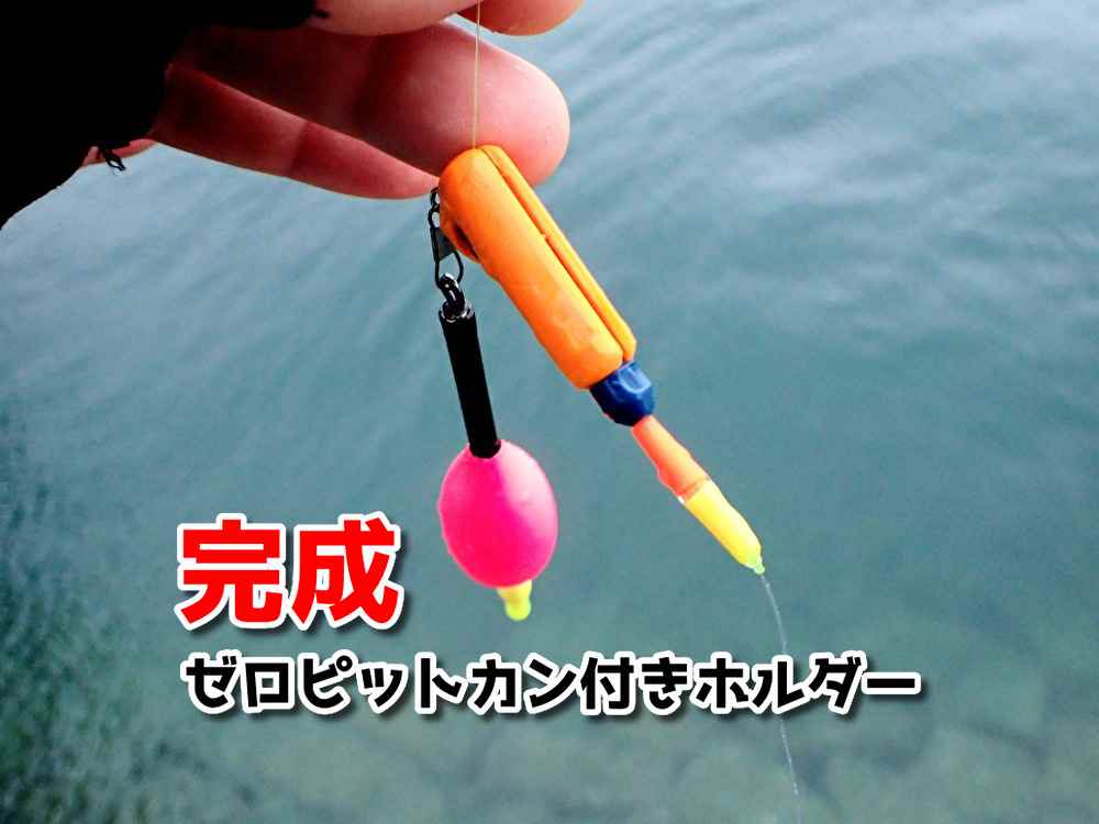 シマノからゼロピットという、道糸を切らずにワンタッチでウキを交換できる構造のウキが発売されているんですが、これ「ワンタッチでカン付きにもできたら最強では?」と思って、数年前に改造してゼロピットカン付きホルダーというものを自作しました。