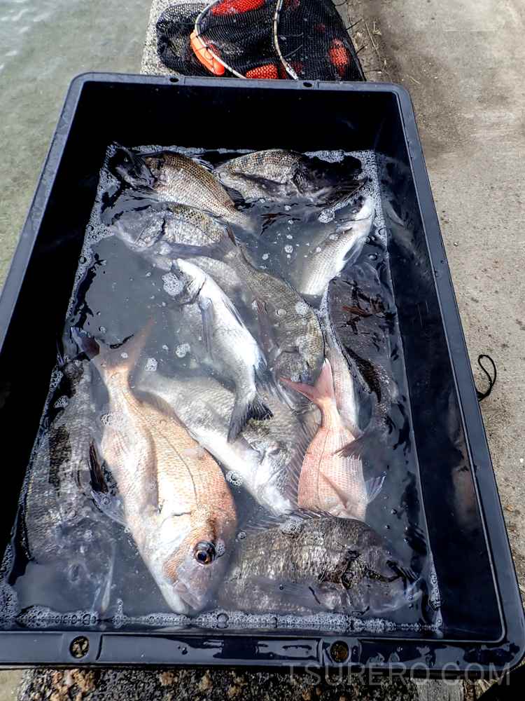 釣果はチヌ25cm〜40cmちょいが14匹、アイゴ1匹、マダイが数匹と、結構いい感じでした。