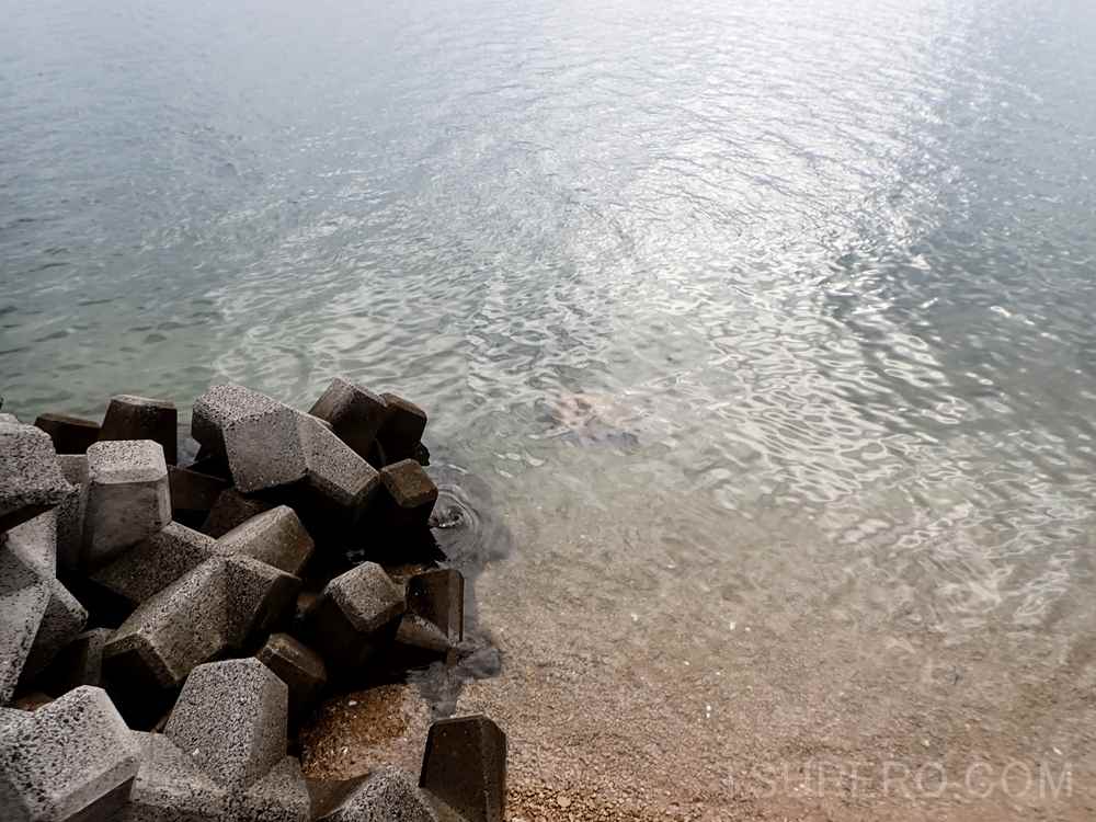この場所は以前、二馬力ボートで沖から目をつけていた場所。実際に現場に行ってみると、どう見ても釣れそうな地形と潮だな〜って事で、竿を出しました。