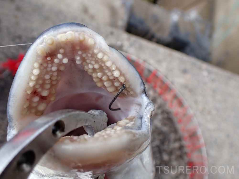 ただ、上げ途中の食わない時間には手の平サイズ~26cm程度のチヌとフグだけしか掛けられませんでした。エサ取りも少し沖のボトムでしか口を使わなくなってて、なかなか絞り出すことができなかったですね~。ベタ底ズルズルして延々流してればワンチャンあったでしょうけど。