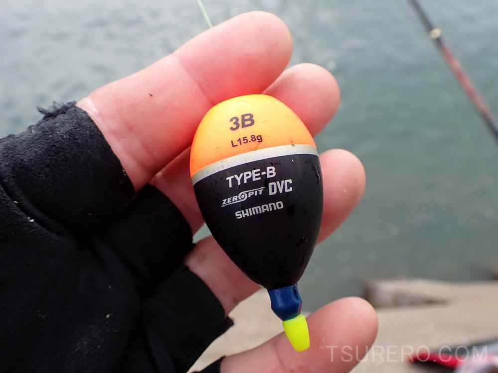 3Bのウキで水深より深い位置にウキ止めをセッティングしておき、落とし鉛は付けず、練エサやコーンだけの重さでボトムに這わせ、ウキはプカプカさせておきます。
