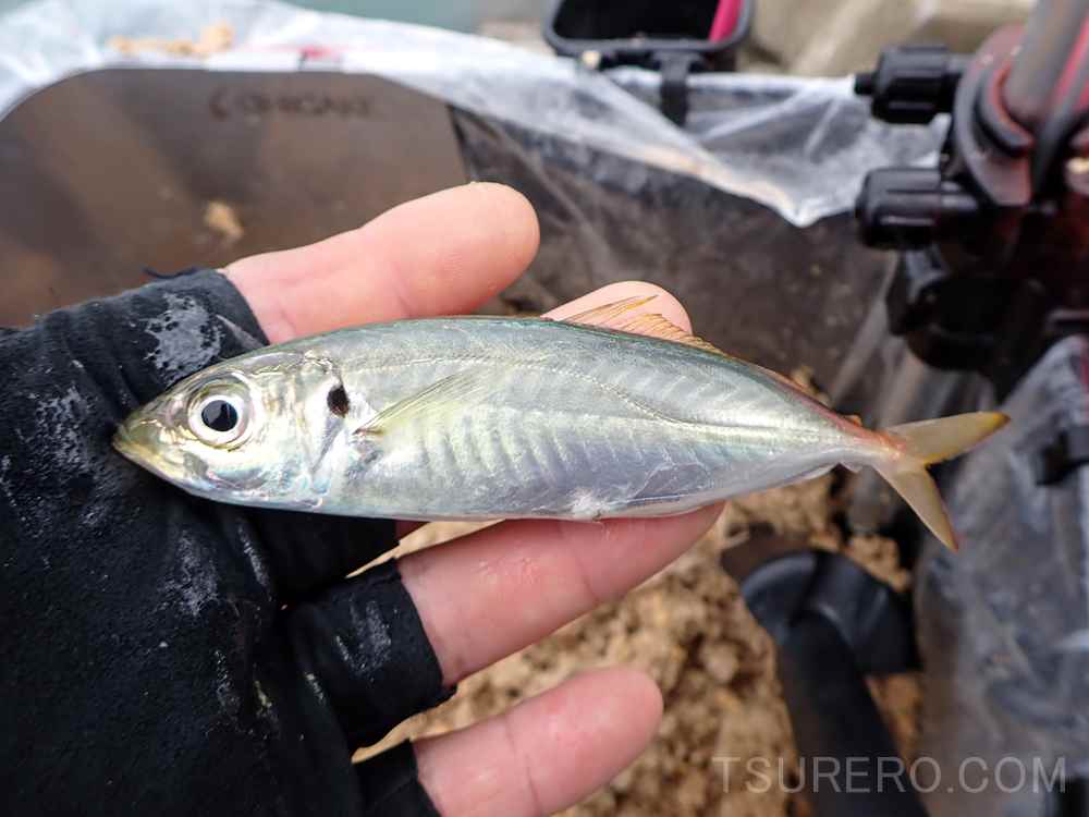 2匹釣れた後、オキアミを回収中に小アジがヒット!