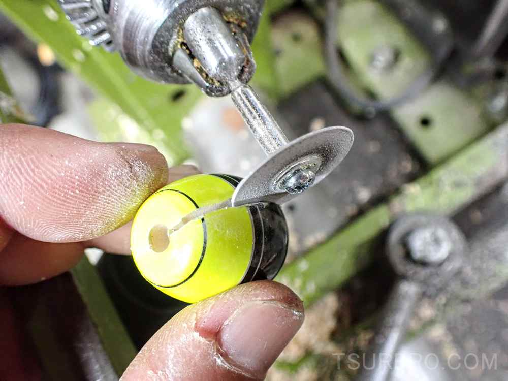 気をつけないと手を切ったりするので、安全の為にはウキをバイスで固定して、ノコギリやルーターで切れ目を入れたほうが良いですね。