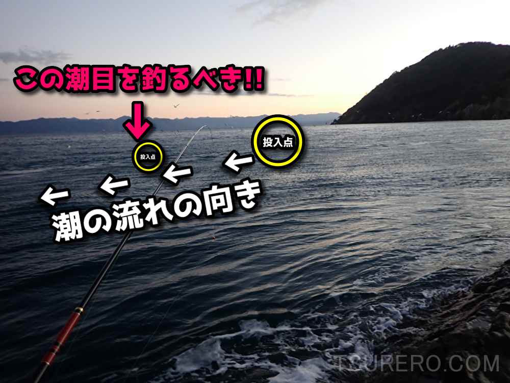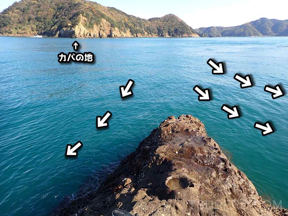 潮は矢印の通りに当ててきて先端で分岐していました。