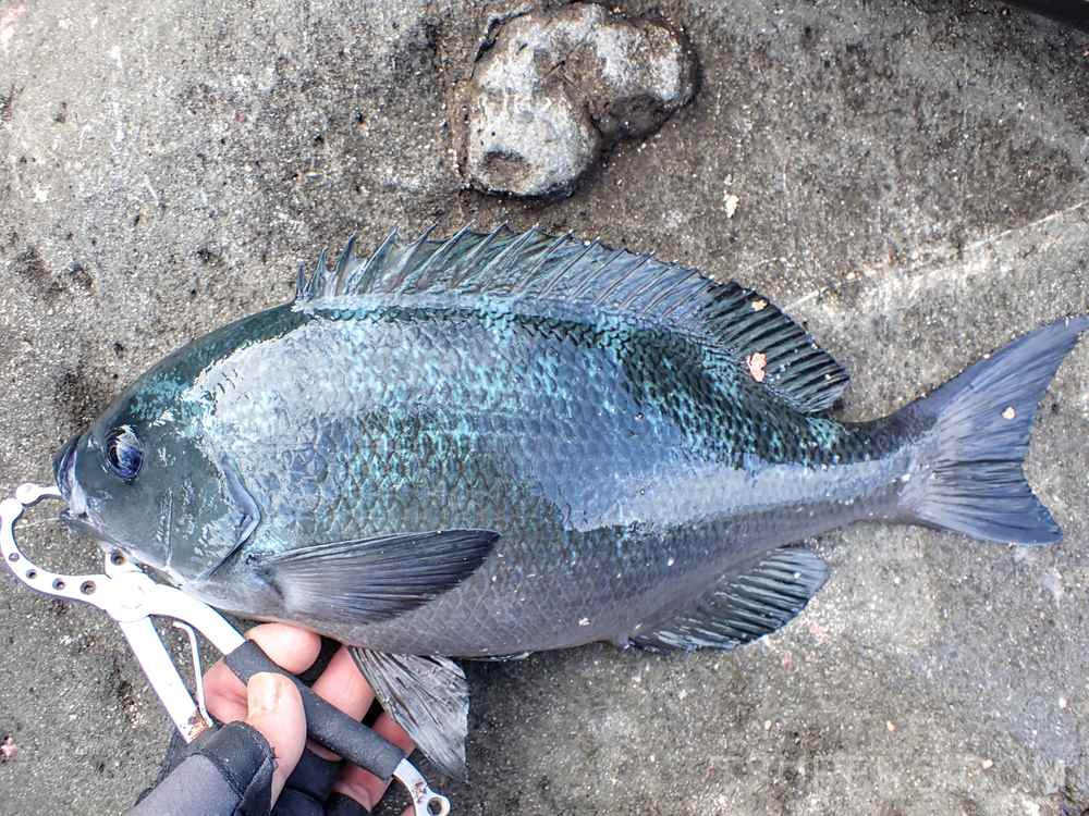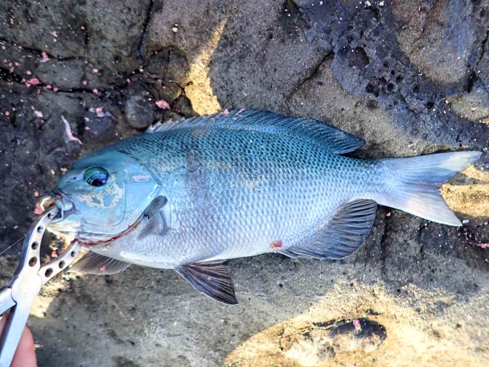 朝は西に向かう流れが強く、また仲間と2人で降りて釣りにくかったんですが、途中から潮が弛んで風もなく、グレの活性が爆上がりしてて乱舞してるという状況でした。