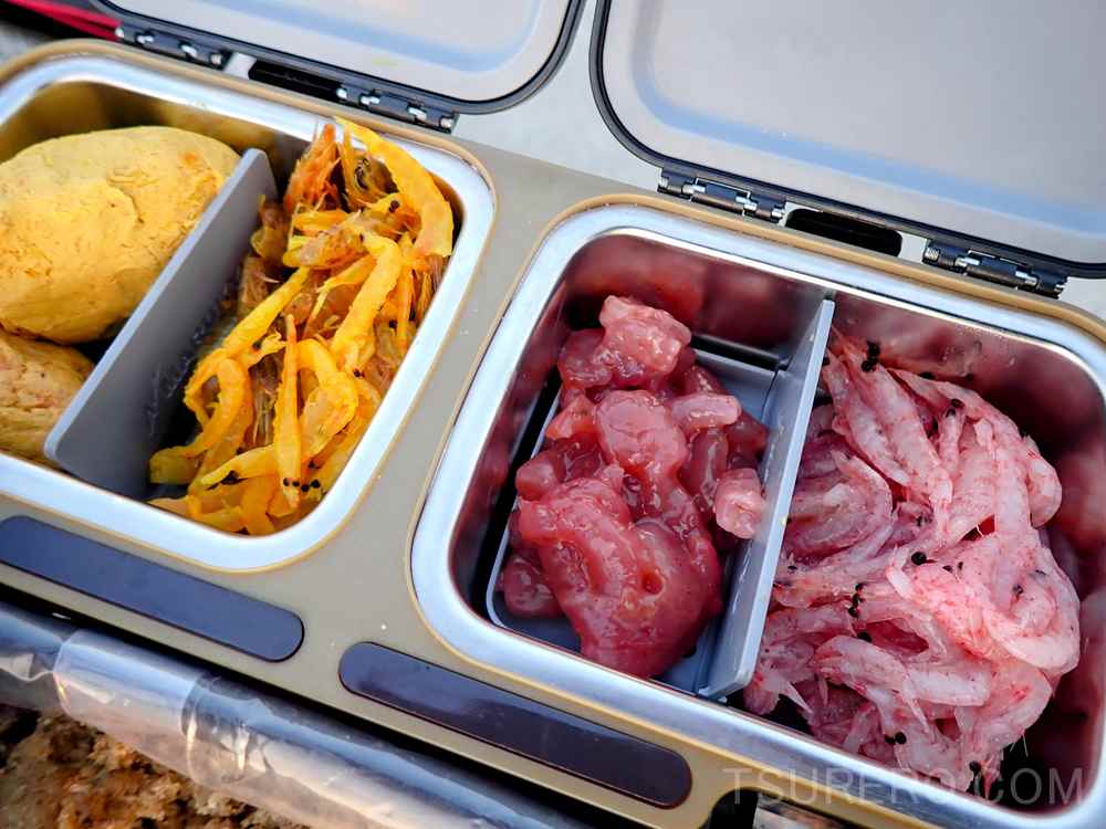 コマセはヌカ+オキアミ+サビキ用の常温アミエビ。