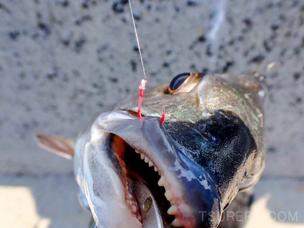 1回歯に針が乗っていたのか、なんの感触もなく針ハズレしちゃったのが1回ありましたね。身切れの時とか首振りの時とかに外れた感触ではなく、引っ張ってる時にチヌが口を開けてそのまま外れたって感じるときのアレですね。実際は浅い針掛かりによる針ハズレかもしれませんが。真偽は不明。
