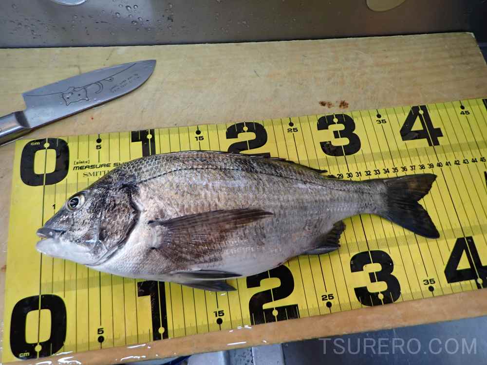 というわけで6時間掛けて頑張って釣ったチヌがこちら!!