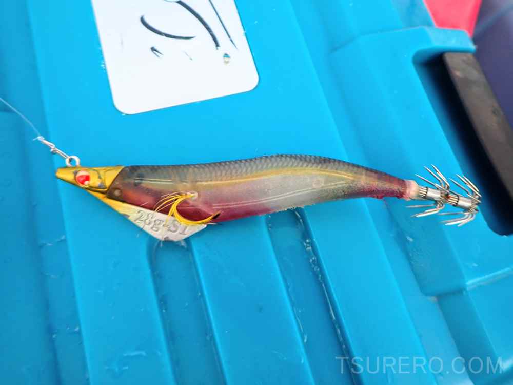時期的には2.5号や3号エギが良いんでしょうけど、朝マズメで高活性の大きめの個体が居ないかなと言うことで、少し大きめのティップラン用のエギから投入。