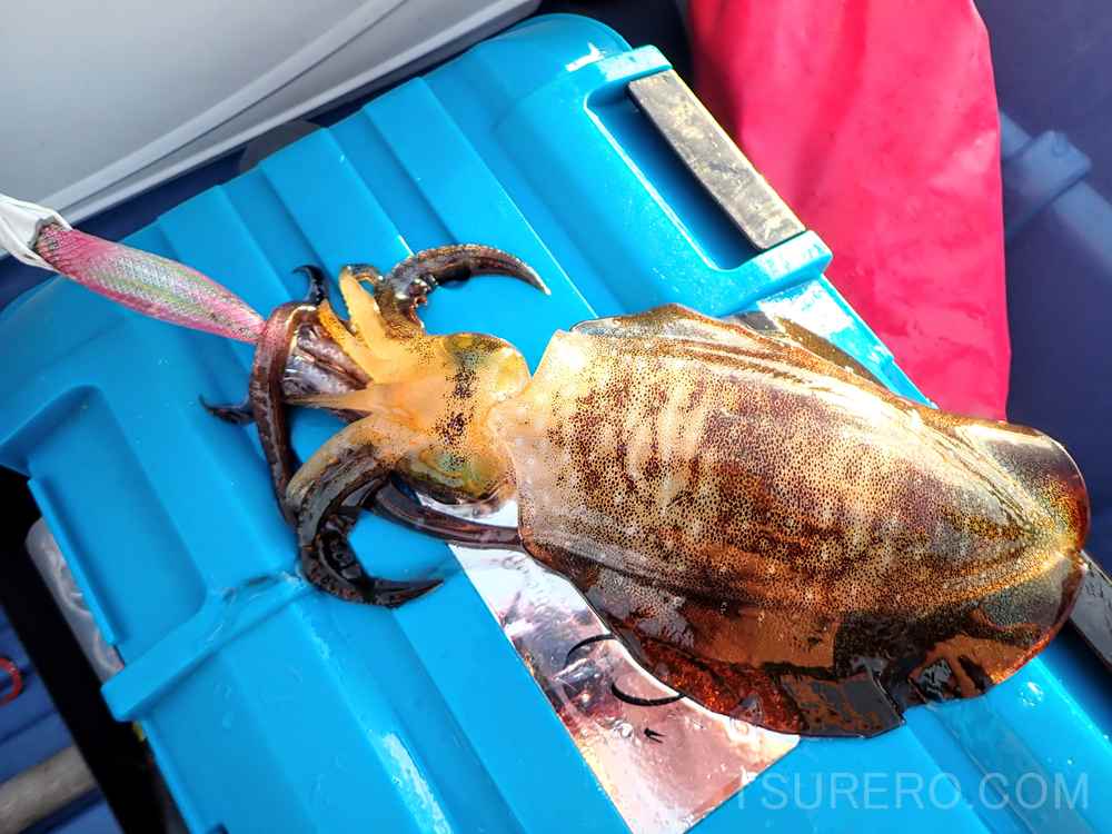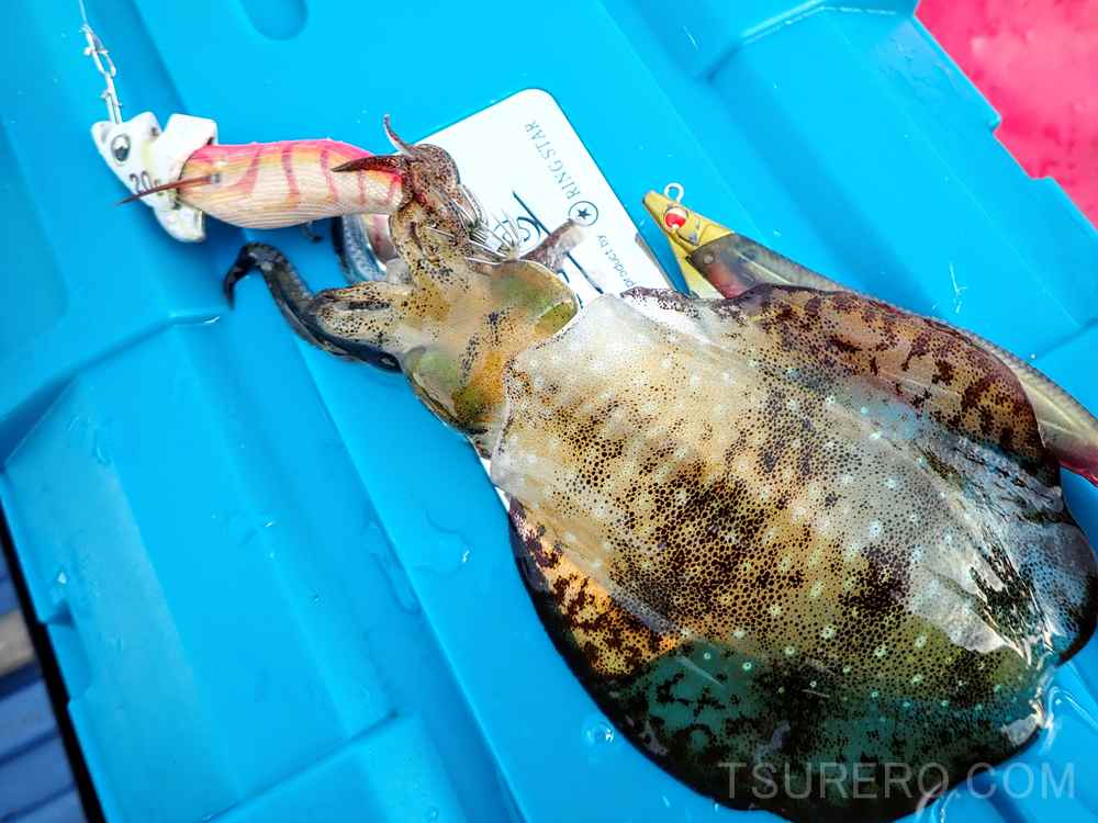 まあ、大きめのコウイカ系は首根っこ掴んでサイドフロートの上で口を海側に向けて絞めてやれば安全。ミニボートだと水面に上がってきた瞬間が一番ヤバいですね。