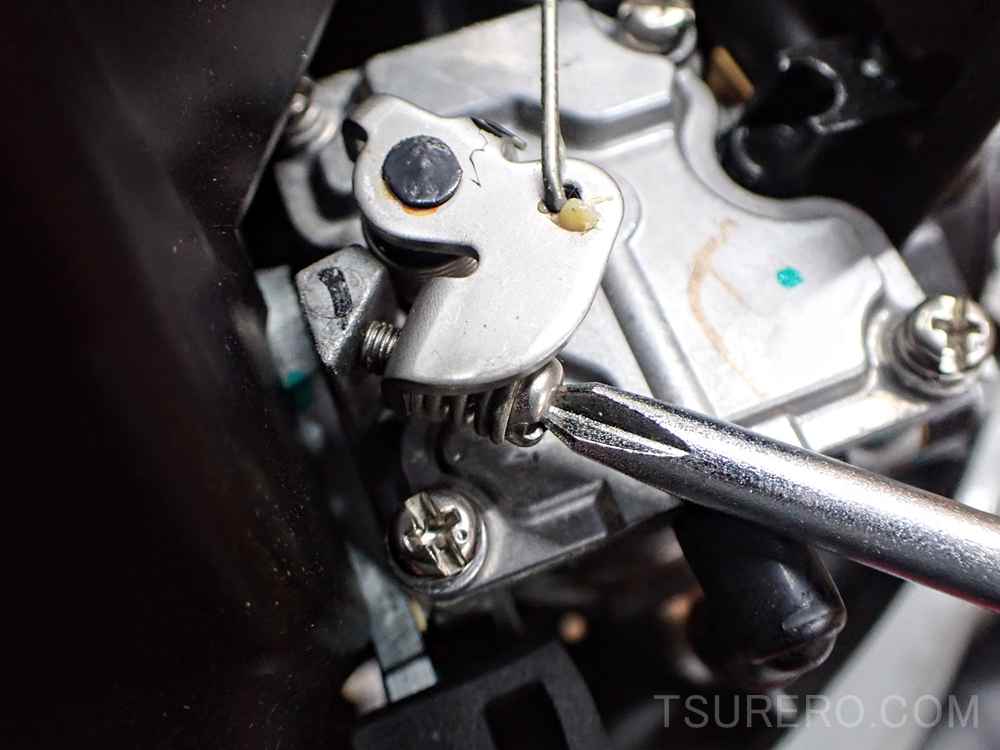 ホンダBF2がアイドリングでエンストするのでスロットルストップスクリューの調整&色々メンテ【船外機メンテ】 オフショア(船釣り) 2025.10.23 この記事は約1分で読めます。 記事内に広告が含まれています。 スポンサーリンク 前回使用時にアイドリングが低く、スロットルを一番戻した状態でエンストしてしまっていたので、スロットルストップスクリューの調整でアイドル時の回転数の底上げをしました。 【HONDA/ホンダ】4ストローク船外機 2馬力 BF2DH-SCHJ トランサムショート仕様 空冷 ホンダ船外機 ボート用品 ホンダ(Honda) Amazonで見る 楽天市場で検索 Yahooショッピングで検索 この部分のプラスねじを締めて調整。 ネジが締まる程スロットルが戻らないようになる訳ですね。 BF2は遠心クラッチなので、回転が高すぎるとペラが回りだしてしまうので、エンストしないけどペラも回らないくらいに調整。 ついでにエンジンオイルの交換とプラグの交換もしておきました。 金属部分には6-66を吹いて、メンテナンス完了! KURE(呉工業) 6-66 (315ml) マリーン用防錆・防湿・潤滑剤 [ 品番 ] 1054 [HTRC2.1] KURE(呉工業) Amazonで見る 楽天市場で検索 Yahooショッピングで検索 【HONDA/ホンダ】4ストローク船外機 2馬力 BF2DH-SCHJ トランサムショート仕様 空冷 ホンダ船外機 ボート用品 ホンダ(Honda) Amazonで見る 楽天市場で検索 Yahooショッピングで検索 【西濃運輸営業所止め配送】[SPORTYAK245] 3人乗りボート GREEN【キャンセル・代引き不可】 Bicジャパン Amazonで見る 楽天市場で検索 Yahooショッピングで検索