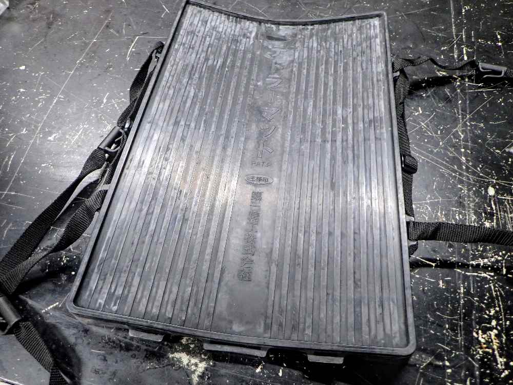 これはテトラポットに敷くゴム製のマットで、バッカンやクーラーボックスが真っ直ぐに置けますよ〜という商品。